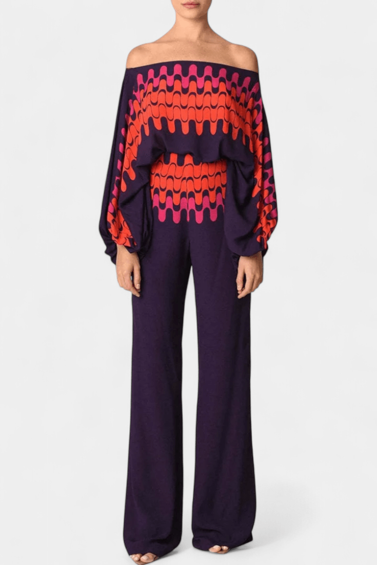 Sybella | Sæt udstråler tidløs elegance og håndværk i særklasse. Den sammensatte dragt består af en off-shoulder-bluse med pufærmer og brede bukser, der sammen skaber en harmonisk silhuet, hvor komfort møder raffinement. Hver detalje vidner om omhyggeligt håndværk og premium materialer, mens det udsmykkende mønster tilføjer kunstnerisk dybde. Provenance og æstetisk ballast giver sættet en varig værdi og eksklusiv appel, der tiltaler designelskere og samlere. Med fokus på holdbarhed og let elegance er Sybella | Sæt en investering i garderoben, der følger årstiderne med ynde og struktur.